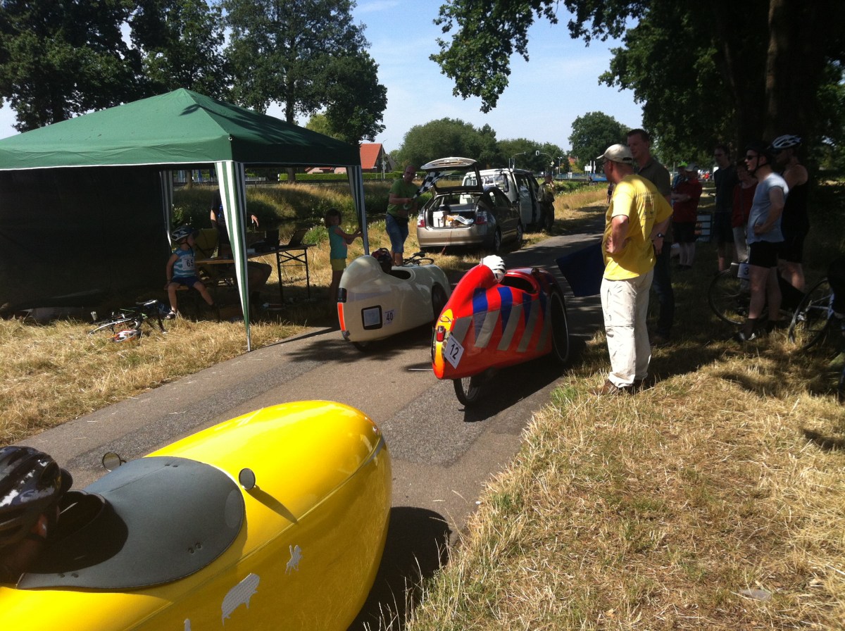 IMG_7908 Gepubliceerd 20/07/2014 at 2592 × 1936 in Zomercompetitie NVHPV Rütenbrock: hitte, lekke banden en gezelligheid ← Vorige Volgende → In de rij voor de start van de snelle ronde, Uli zwaait net de finish-vlag