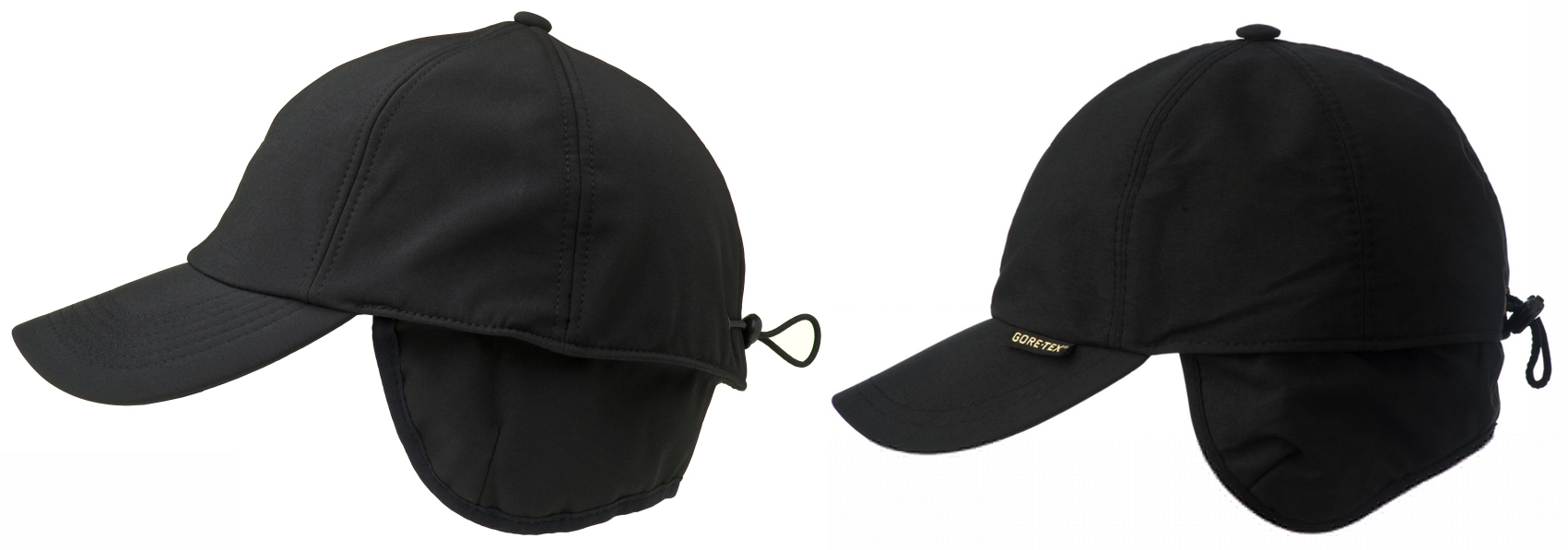 Links de softshell, rechts de pet met Gore-Tex