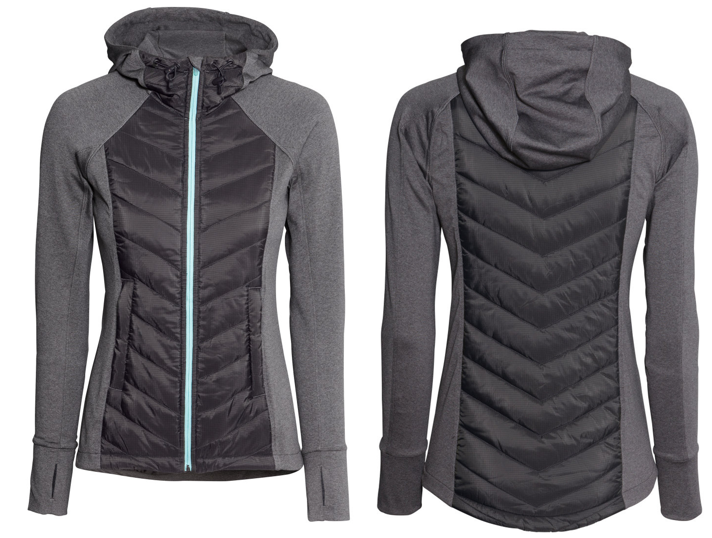 Om voorbereid te zijn op kouder weer heb ik ook een deels gewatteerd hardloopjasje gekocht bij H&M. De mouwen, zijkant en schouders zijn niet gevoerd, de voor- en achterkant wel. Hoewel het voor een velomobilist mooier zou zijn als de rug ook niet gevoerd was, vind ik het toch niet te warm in dit jasje. Ik denk dat ik hier met winters weer nog wel veel gebruik van zal maken.