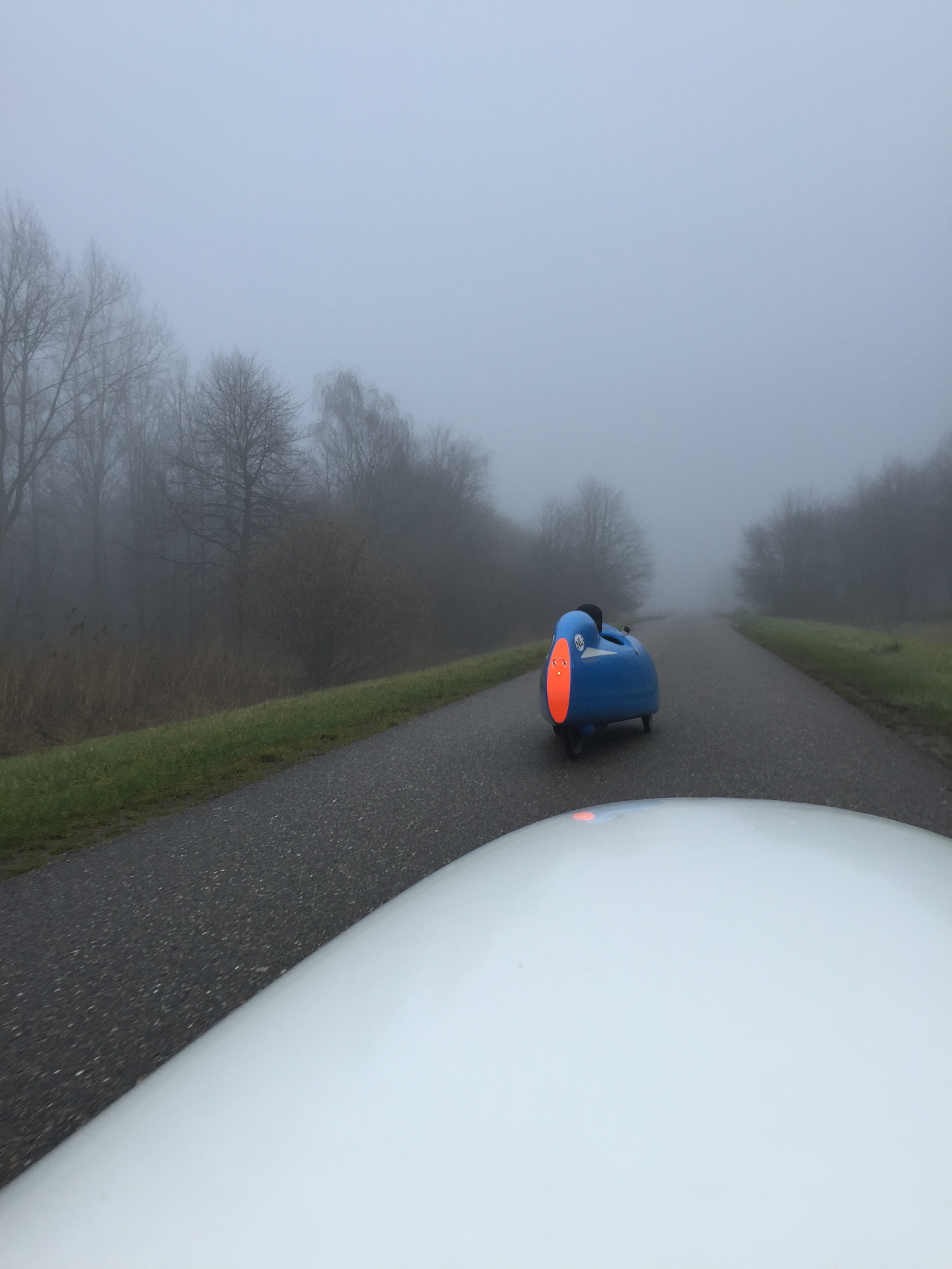 Theo vertelde enthousiast over zijn nieuwe achterband, de Schwalbe Almotion die bijna net zo’n lage rolweerstand heeft als de Furious Fred en goed lekbestendig is. Ik vroeg hem of hij afgelopen week in de stormachtige wind nog elke dag gefietst had naar zijn werk. Dit had hij gedaan. Hoewel hij zelf eerst erg sceptisch was geweest over de stormstrip wist hij te vertellen dat een stukje tochtband in de lengte over je fiets echt een wereld van verschil maakt. We kregen de theorie van onderdruk en turbulente wind uitgelegd aan de hand van een tekening.