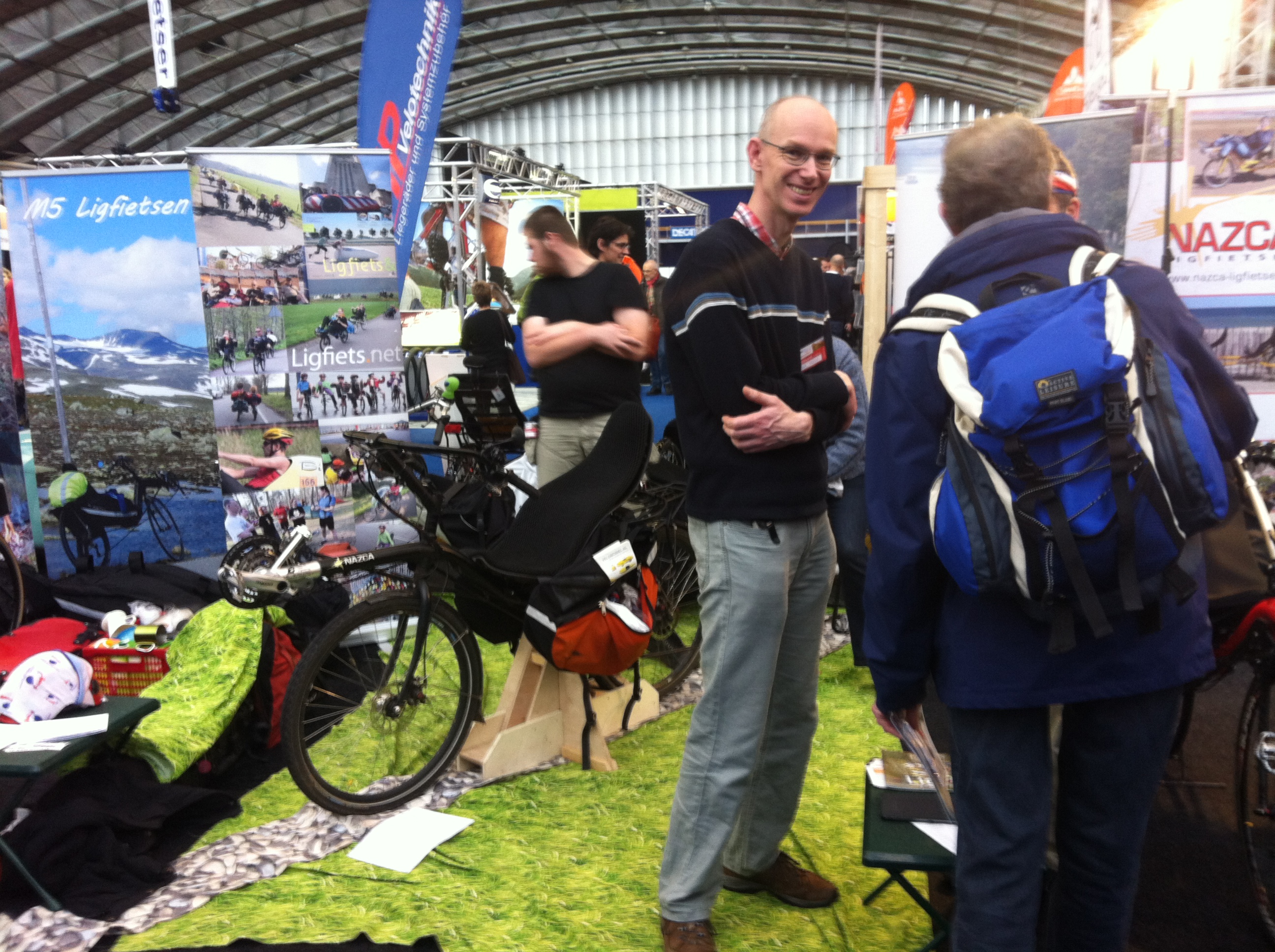 Kees van Malsen, voorzitter van de NVHPV, stond op de stand, samen met leden van de ligfietsvereniging. Er stond zich net iemand in te schrijven als lid toen we aankwamen. Even contact mee gemaakt en verteld hoe leuk de Treffens en Cycle Vision waren. Dat het verenigingsblad Ligfiets& ook zo mooi is dat ontdekt hij zelf wel.