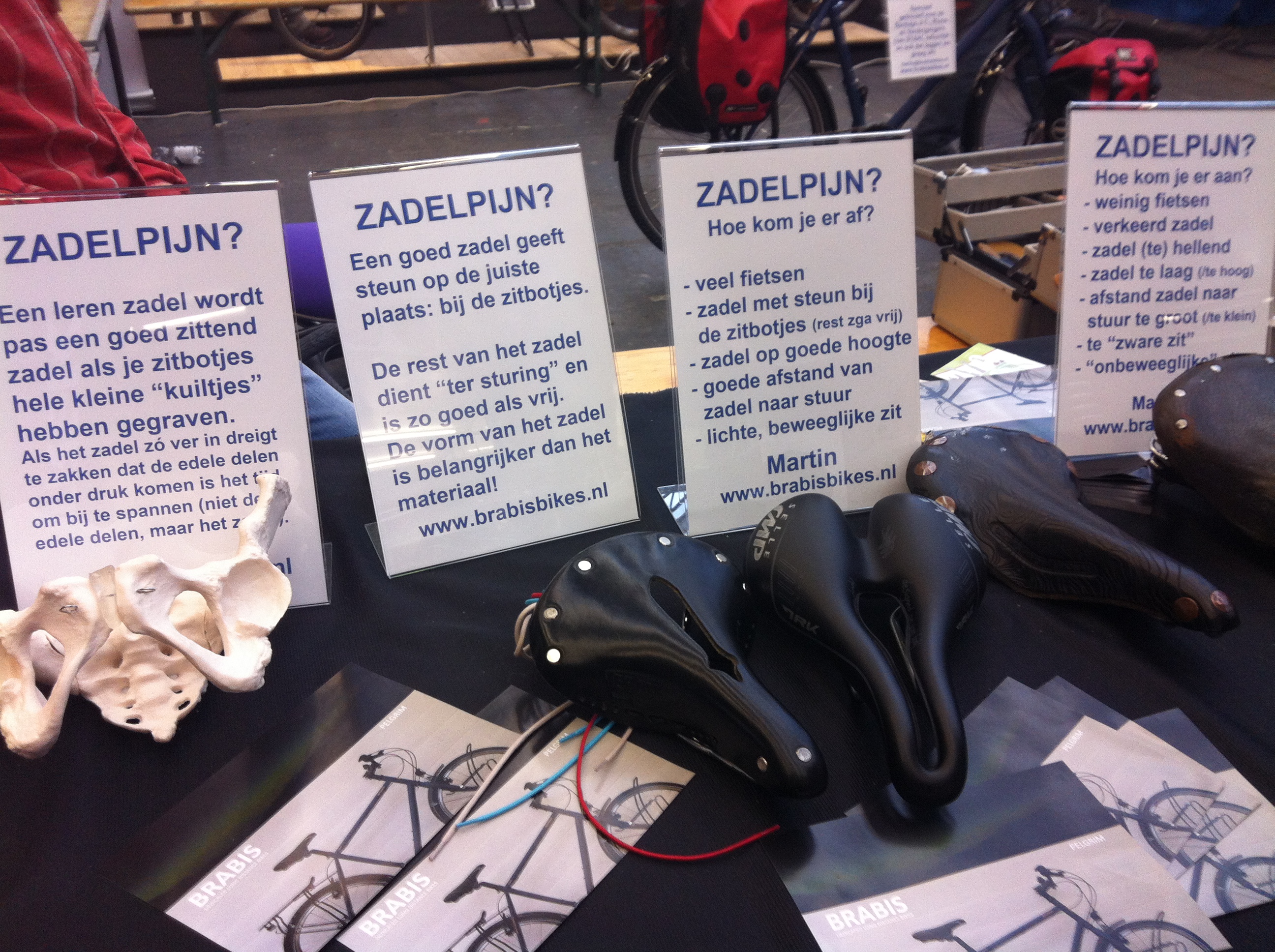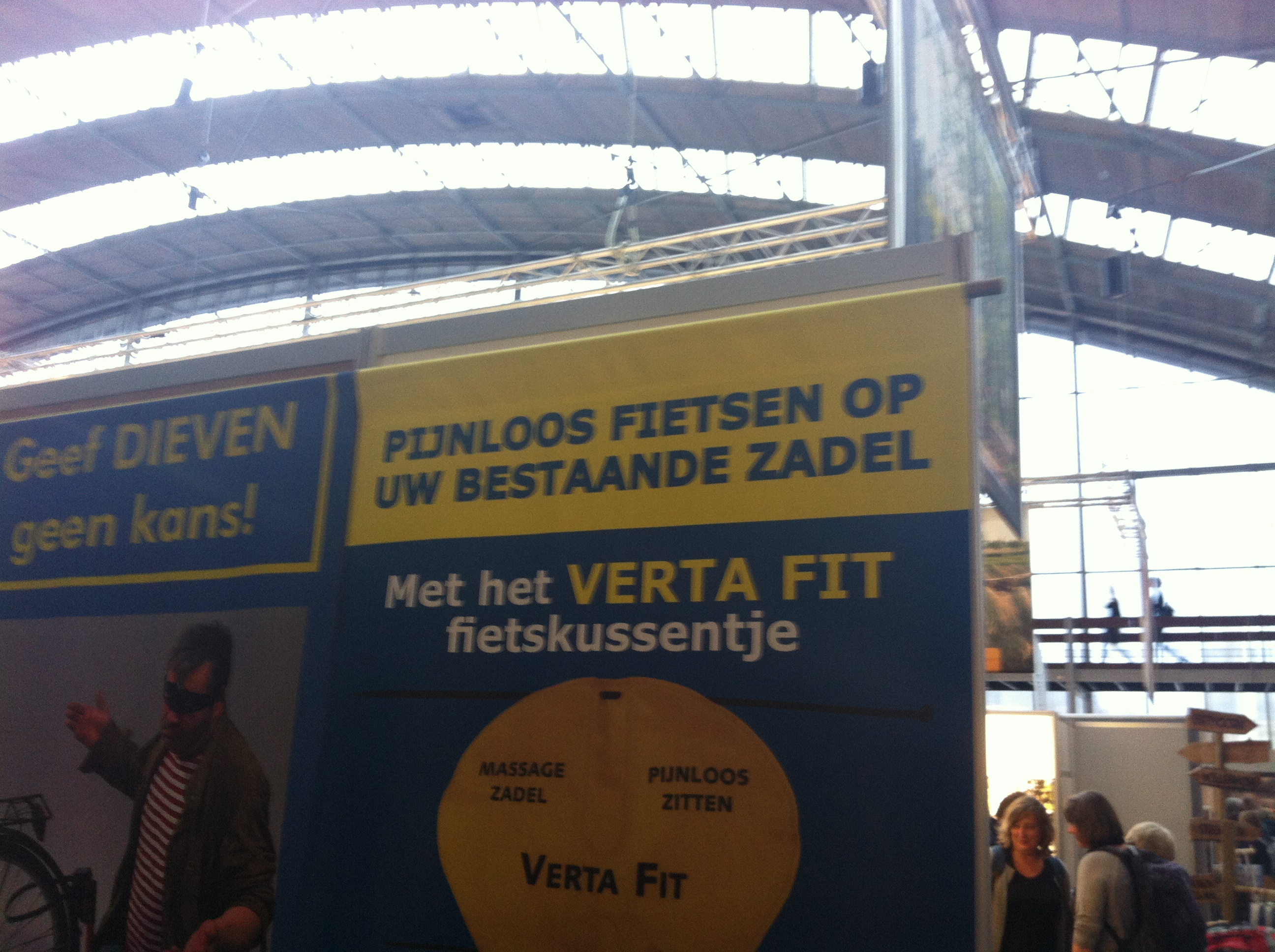Opvallend was het aantal stands met oplossingen voor kwaaltjes zoals zadelpijn en zere voeten. Inlegzolen (ook speciale voor fietsers) van Superfeet, opblaasbare zadelkussentjes, dubbellaagse sokken tegen blaren van Wrightsock, zitbotjesadvies, het was er allemaal te vinden.