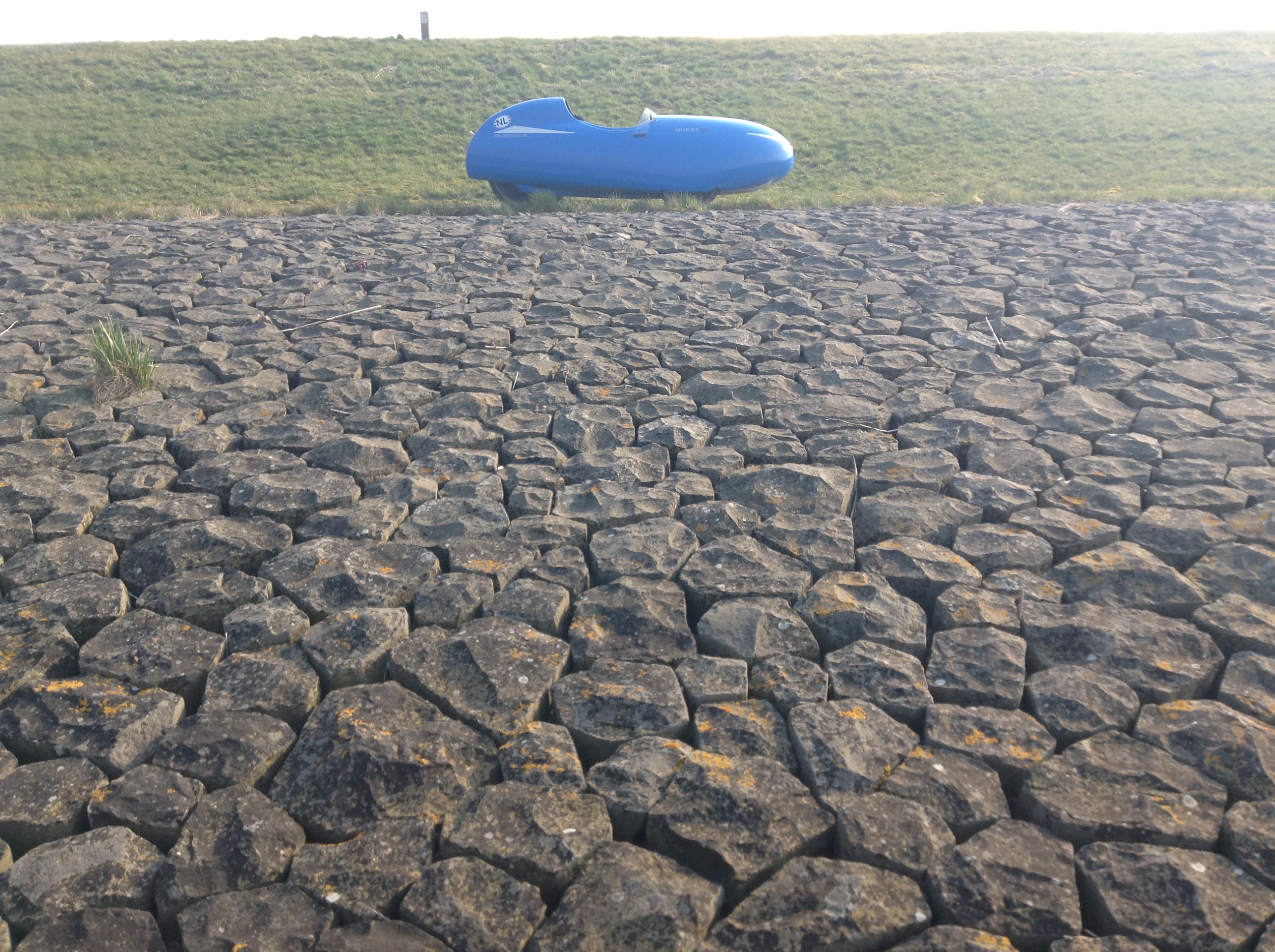Mijn kleding gaat nu in omgekeerde volgorde uit als aan in de herfst. Eerst droeg ik in de winter een dik Icebreaker shirt met een col, dikte 260, met daar over een windbreaker. Daarna droeg ik een normale dikte (200) wollen T-shirt met lange mouwen. Vandaag reed ik met korte mouwen onder de windbreaker. Ik had een lange hardloopbroek aan maar dat was best warm in de velomobiel. Nog even en dan kan ook de windbreaker weer uit.