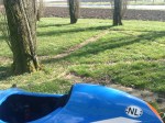 Tijdens het keren bij De Fantasie door me achteruit te laten rollen is mijn ketting weer eens naast de derailleur gelopen. Ik herken het inmiddels feilloos aan het niet meer kloppen van de schakelstanden. Dan rijd je opeens 30 in B2, bijvoorbeeld. Nadeel is ook dat je niet meer terug kan schakelen. In de duinen van Almere kom ik de heuvel niet eens meer op. Ik zet de fiets schuin tegen een decorstuk dat drijfhout moet voorstellen, schroef het kapje open en leg de ketting terug op zijn plek. Daarna moet ik de fiets naar achteren trekken om hem weg te krijgen van zijn plek. Meteen gaat het weer fout. Ik besluit het thuis maar op te lossen.