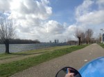 Via de Havendreef kom ik weer langs het Gooimeer. De wind is hier stevig. Ik krijg af en toe een zwiep maar ik merk dat mijn fiets er anders op reageert met de stormstrip: een verbetering. Het Gooimeer wordt IJmeer en we belanden in de duinen.