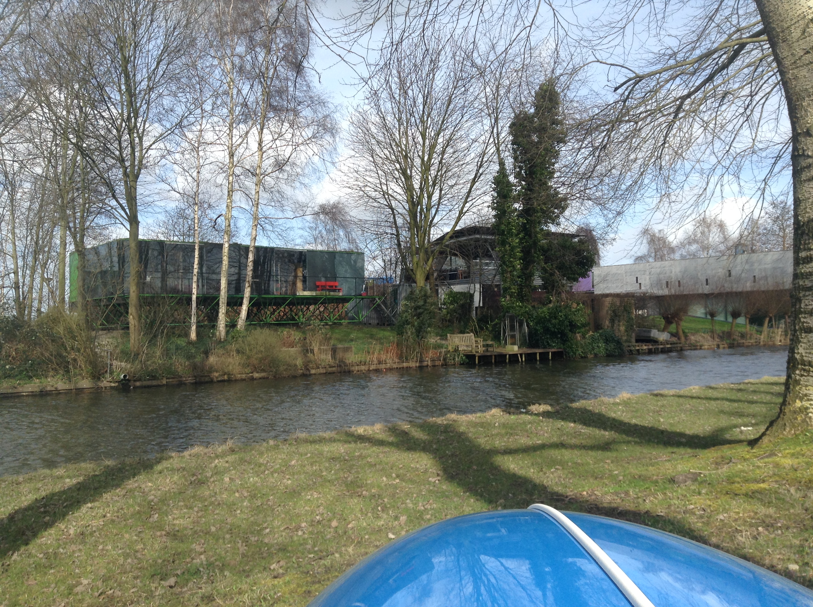 Na de fotosessie vervolg ik de westkant van het Weerwater langs de voormalige popzaal Muzinq, een voorbeeld van blob architectuur en de appartementen in The Wave.