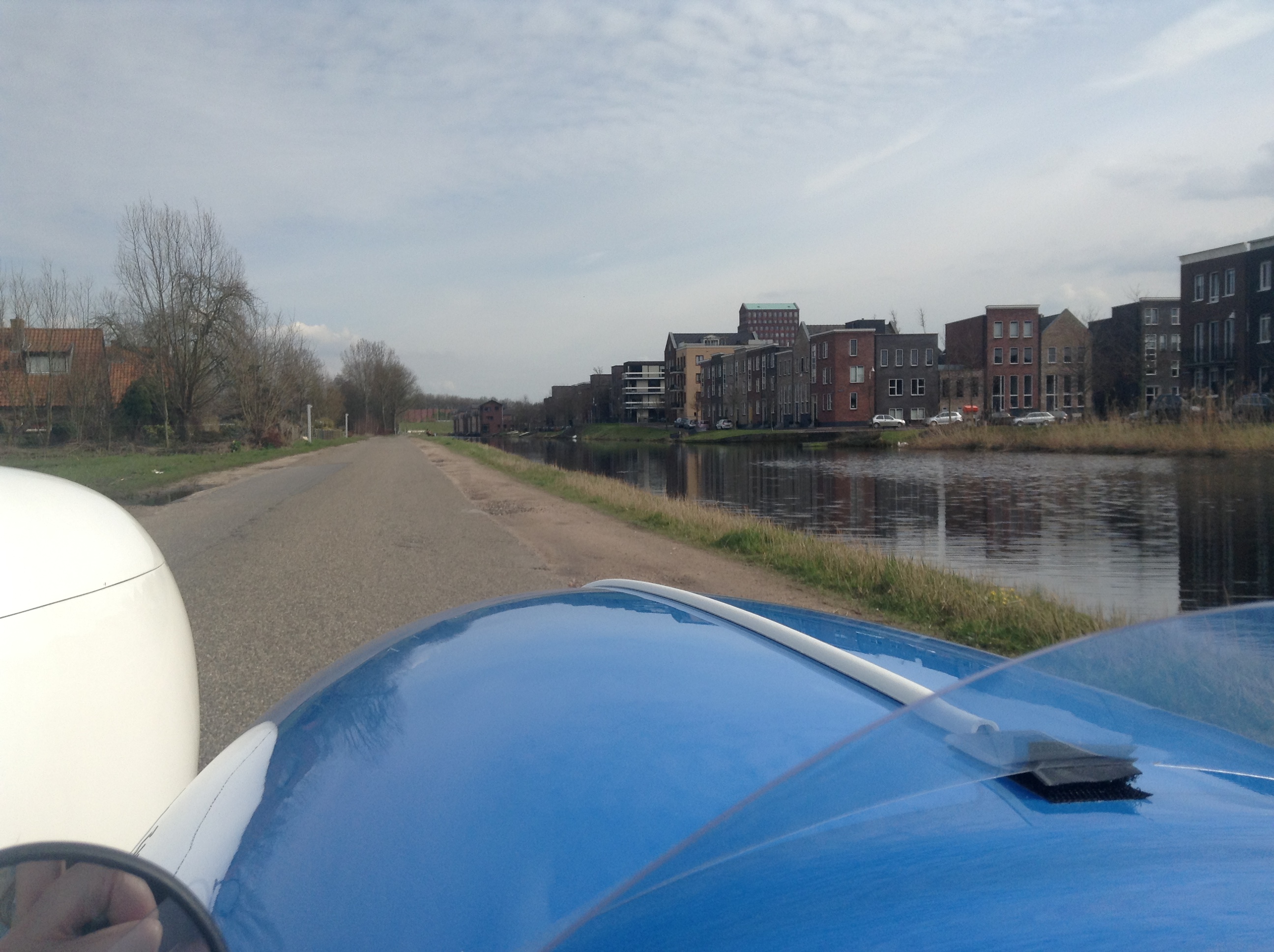 We gaan op vrijdagmiddag heen. De racefietsroute blijkt een mooie afwisselende route te zijn. Eerst door de polder, waar een racefietser zichtbaar zijn best doet om ons voor te blijven maar hij moet op een gegeven moment opgeven. Bij het passeren kan ik het niet laten om even te roepen “Hup, sneller! Ik heb zelfs kampeerbagage aan boord.” Even verderop halen we een tweede racefietser in. Hij heeft wielerkleding aan van de Koninklijke Marine. Ook de Marine is geen match voor ons. Het is lekker zonnig weer, 10 graden, weinig wind.