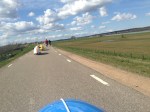 Na het bos fietsen we door een prachtig gebied, over een breed halfverhard pad langs de Nederrijn. We steken die twee keer met een gierpont over. De lunchlocatie ’t Veerhuis is bij een van de oversteken. We komen een 2CV-club tegen die onze club enthousiast begroet. We passeren onderweg een vervallen steenfabriek en kastelen (Kasteel van Amerongen en Kasteel Prattenburg), rijden over een hele hoge bandijk met links en rechts huisjes. Hebben prachtig uitzicht over een valei. Het is erg jammer dat het tempo zo hoog ligt dat je onderweg niet even kunt stoppen voor een foto. Ondertussen is het de hele tijd zonnig met mooiweerwolken. Na nog een laatste klim zijn we weer terug in Woudenberg.