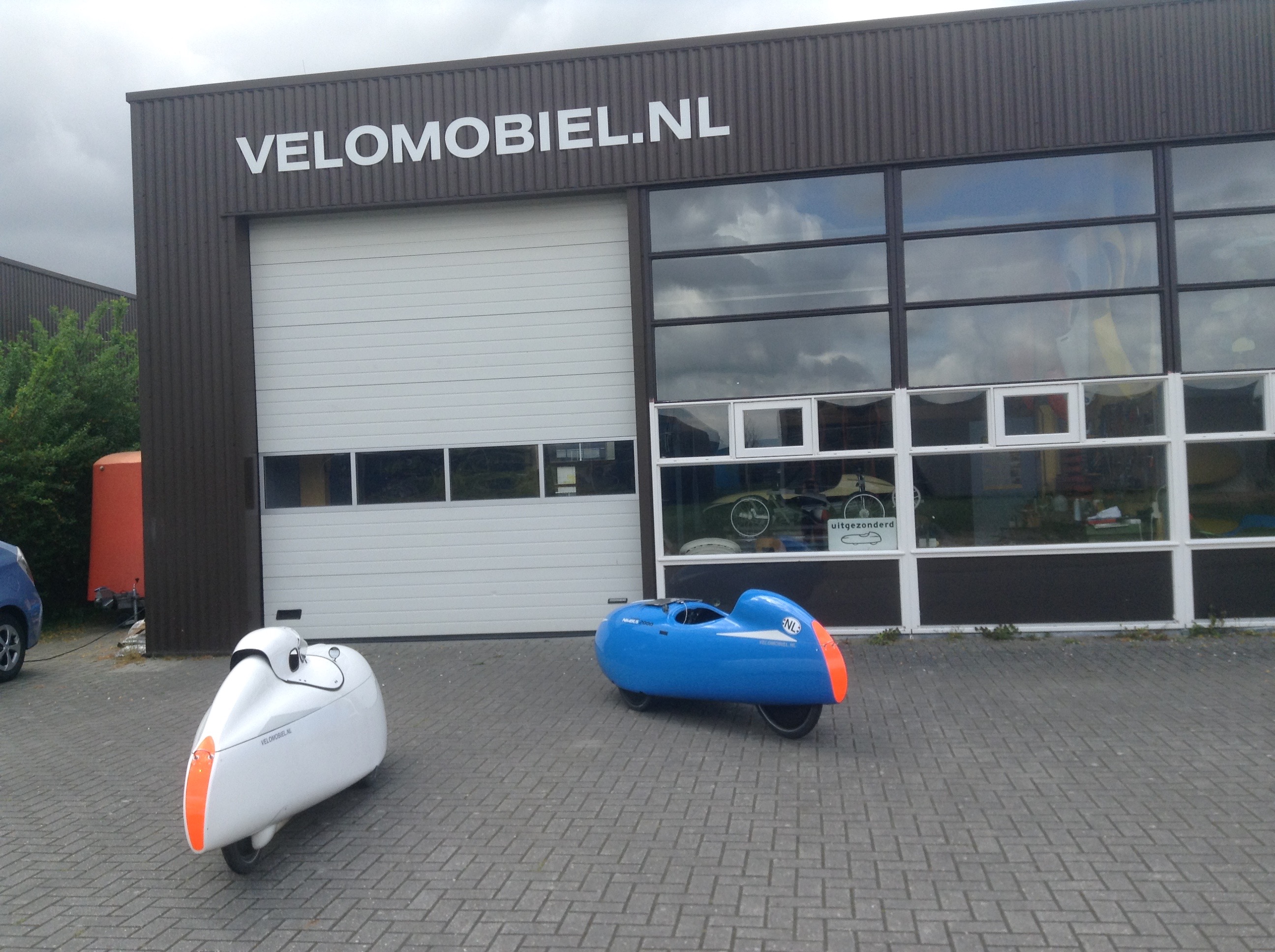 De custom made lader was niet het enige doel van de reis. Mijn remmen zijn opnieuw afgesteld (één wiel bleek bijna niet meer te remmen, het andere wel), Dave heeft nu ook een hoekprofiel zodat hij zijn benen kan gebruiken voor het uitstappen en zich niet volledig hoeft op te drukken. Ik heb nu ook mijn stuur aan een remkabel hangen, zodat je het niet de hele tijd zelf hoeft op te tillen om problemen met schouders op lange reizen te voorkomen. Gekeken naar een rechter velomobieltas met bidonhouder maar zoals ik vermoedde past die niet (de bidonhouder op de tas zit in de weg van de elleboogsteun). Verder vond Dave dat zijn fiets de laatste tijd wat zwaar trapte terwijl deze in vrijloop wel goed liep. Oorzaak waren wat grintsteentjes in de goot onder het stoeltje, bij de kettingrol, die al helemaal waren ingevet met kettingolie.