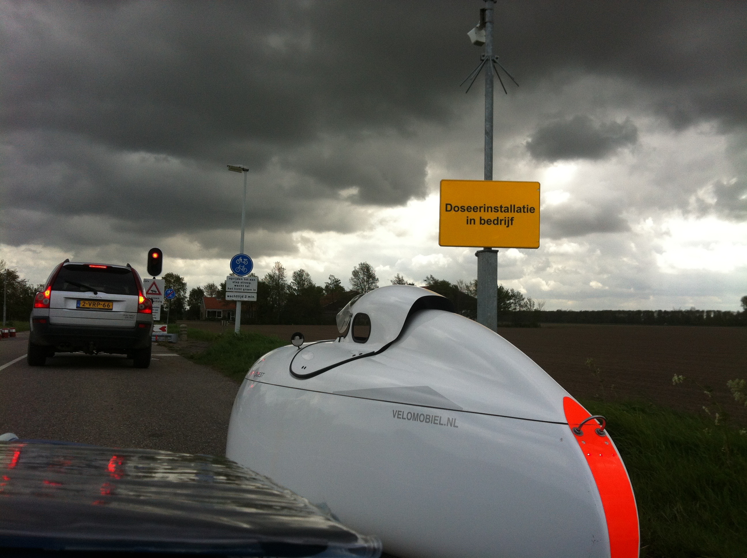 Afgelopen weekend na het rondje om het Markermeer ontdekte ik, na twee lange fietsdagen achter elkaar, dat de accu van de velomobiel daarna wel zo’n beetje leeg is. Misschien zou ik er net drie dagen mee kunnen doen. Dave heeft dat probleem niet, die heeft op zijn iets oudere Quest (bouwjaar 2013) nog dagrijverlichting met leds. Dat verbruikt een stuk minder dan één koplamp op halve sterkte. Ik wilde ook niet dat ik omwille van energiebesparen domme beslissingen zou gaan nemen zoals het niet rijden met verlichting.