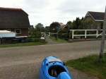 Op de camping in de Weerribben is het op Hemelvaartsdag druk, het staat stampvol met barbecueënde caravanbezitters. Verderop is een speelveld maar wij zitten tussen voetballende mensen. Continu vliegt er een bal richting onze wankele brander met pan. Er staat een ander stel met een tentje dus we zijn meteen vrienden. Het stel, uit Münsterland, is hier met de Canadeze kano en op huwelijksreis. Met de velomobiel zit je niet verlegen om aanspraak, al zijn het natuurlijk wel vaak de geijkte opmerkingen en vragen die je krijgt. We belanden met Anne en Matthias in de bar. Als je met Duitsers in een bar gaat zitten dan ga je vanzelf te veel bier drinken. Het is erg gezellig.