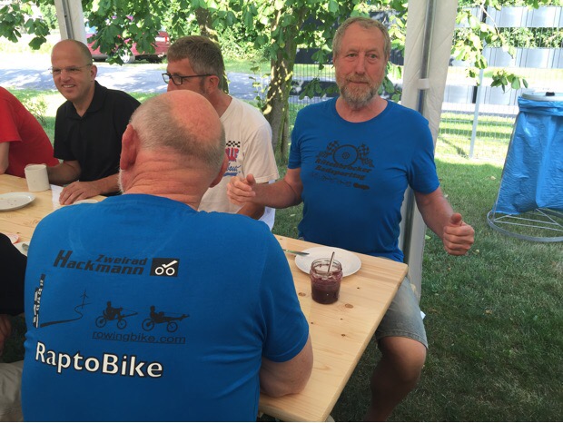 Het is een weerzien met bekenden van Cycle Vision en ligfietstreffens. Marloes en Theo, George Krüg, Allert en Eva, Olaf, Ymte en Swanette, Daniel Fenn, Peter ‘Pjotr’, Theo Zweers, Marjon, Matthias König, Peter Coppens, etc. etc.