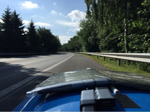 Afwisselend rijden we op de witte weggetjes op de kaart, gele of wegen met driecijferige aanduiding (in Nederland N-wegen, hier Landes oder Bundeswegen). De witte weggetjes kunnen slecht wegdek hebben. Van hobbeldebobbel asfalt, dat er dan weer uitziet als een lappendeken, dan weer met scheuren waar de natuur terugneemt wat de mens heeft proberen te plaveien. Soms bestaat het wegdek uit klinkers, waar het groen tussen alle stenen doorkomt. Niet het snelste type wegdek maar over het algemeen goed te doen met een velomobiel. De meeste 80-kilometerwegen hebben een apart fietspad dat net breed genoeg is om een tegemoetkomende fietser te laten passeren. Soms moet je echter ook op de rijbaan fietsen. Automobilisten houden goed rekening met ons en lijken ons altijd wel te zien.