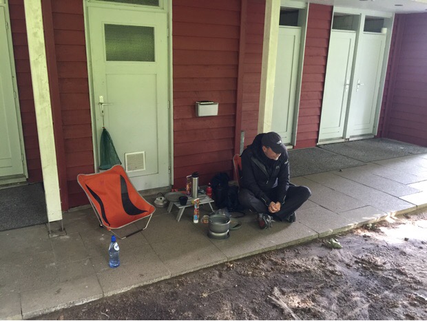 Regen op de camping is echter waardeloos. Je kan in je tentje gaan liggen, een wandeling maken en verder nat en koud worden of bivakkeren onder het afdak van het toilethuis waar het wel droog maar ook erg koud is. Regen in combinatie met kamperen is maar niks. Zelfs wereldfietser Frank van Rijn haat na al die jaren op de fiets nog steeds regen. Daarbij merk je dat de kou knaagt aan je reserves.