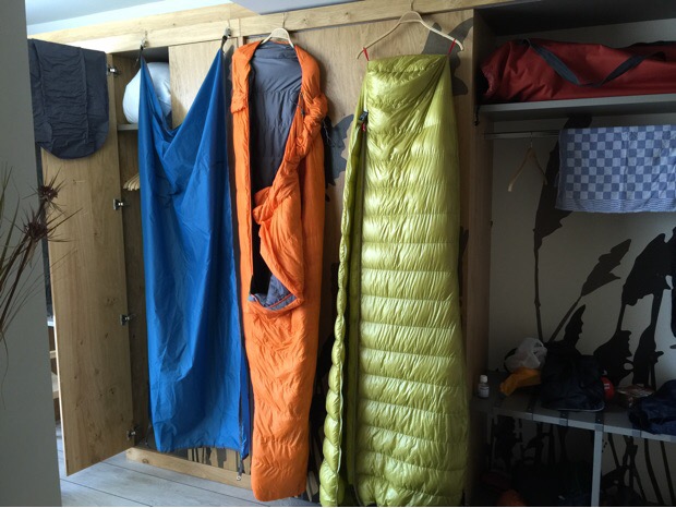 • Ze zijn vochtig door het weer, er in slapen, niet nat. Altijd goed om donzen slaapzakken even uit te hangen voor je ze inpakt maar dat ging de laatste dagen niet. Matten worden aan onderkant wel nat omdat het grondzeil licht doorslaat. Dat wil je niet twee dagen ingepakt laten zitten.