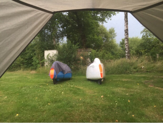 We hadden een rustdag gepland op de camping bij de Bistensee omdat het me een mooiere omgeving leek dan de volgende stop in Rødekro, Denemarken. Met slecht weer kan je echter beter op of in je fiets liggen is onze ervaring. Als alles ingepakt is en je bent weer lekker met de fiets onderweg: dat voelt altijd goed. Regen deert niet op of in de fiets.