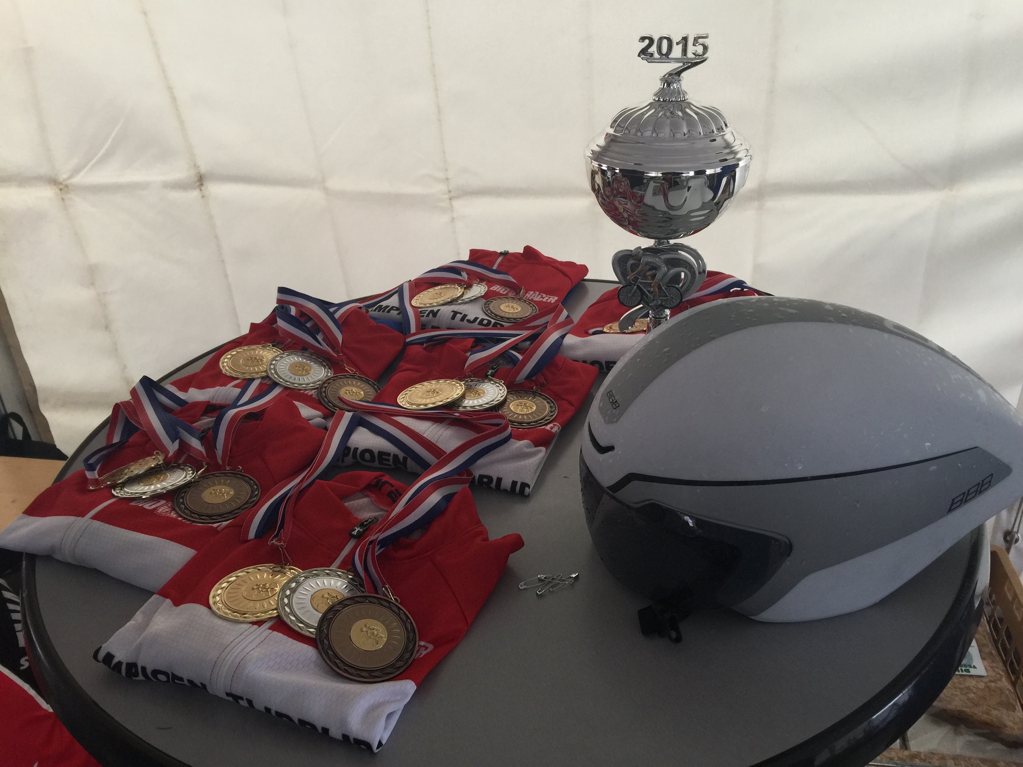 IMG_3240 Gepubliceerd 13/09/2015 at 3264 × 2448 in Op en neer naar Texel voor NK Tijdrijden ← Vorige Volgende → De prijzentafel (niet in beeld: Texelse koek)