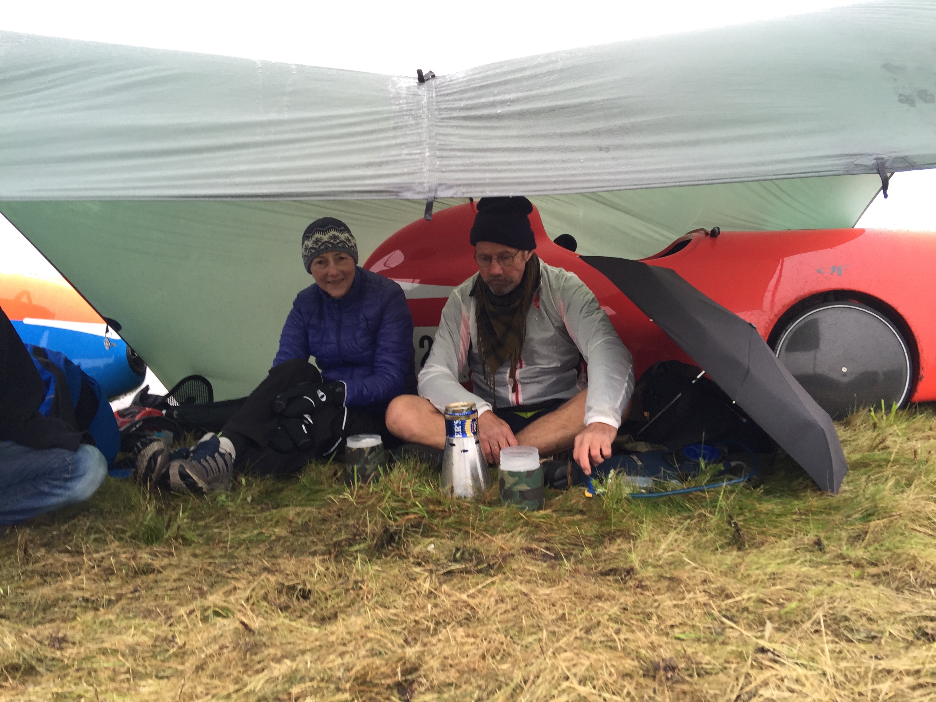 Nadat de eerste twee rijders terug waren hielden Dave en ik het voor gezien. Nog herstellende van een griep vonden we het niet meer verantwoord nog langer te blijven kleumen. Tijdens de LEL is het vaak koud en nat: je kan beter meedoen dan toeschouwer zijn.