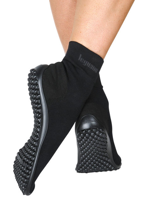 Toch heb ik ze gekocht. Leguano (er zijn meer soorten en merken blotevoetenschoenen) maakt namelijk een heel licht en buigzaam schoentje. Eigenlijk een soort sok met een heel slap zooltje er onder. De ideale huttenslof: licht en heel plat in te pakken. Een paar ballerina’s in maat M (40-41) weegt 290 gram. De sneakers in maat XXL (46-47) wegen 370 gram. De schoenen kunnen in de wasmachine gewassen worden op 40 graden.