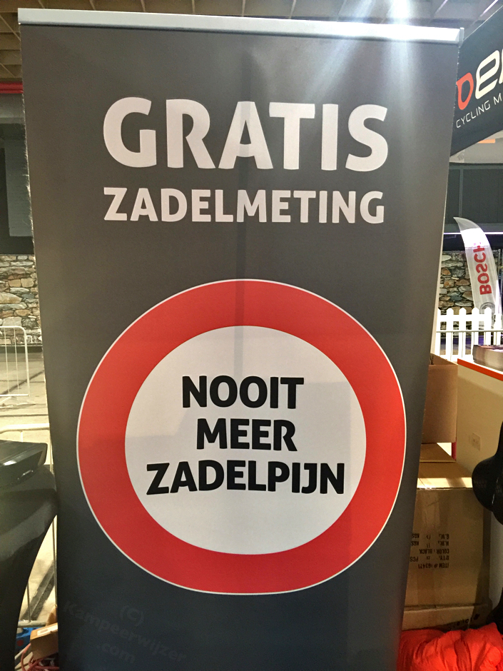 Voor zadelpijn waren er op de beurs diverse stands te vinden met ‘oplossingen’. Je kan dan ook een zitbotjesmeting laten doen. Erg interessant want het resultaat kan overwacht zijn. Zo heb ik vrouwelijke brede heupen maar mijn zitbotjes zijn net zo smal (of breed) als die van Dave die smalle heupen heeft. Een bikefitting kon je niet laten doen op deze beurs (om het goed te doen is veel tijd nodig) maar er waren wel diverse aanbieders, zoals Jan Brinkman in Dronten. We vragen ons af hoe slecht onze oude Gazelle Kathmandu’s door een bikefitting zouden komen: ‘dankzij’ deze fietsen zijn we gaan ligfietsen.