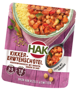 HAK heeft ‘stazakken’ op de markt gebracht met kant-en-klare bonenschotels, bestaande een mix van peulvruchten, groenten, saus en kruiden. Op de folieverpakking staat waarmee het gerecht is te combineren. Super makkelijk voor tijdens het kamperen, want je hoeft de inhoud alleen maar op te warmen.