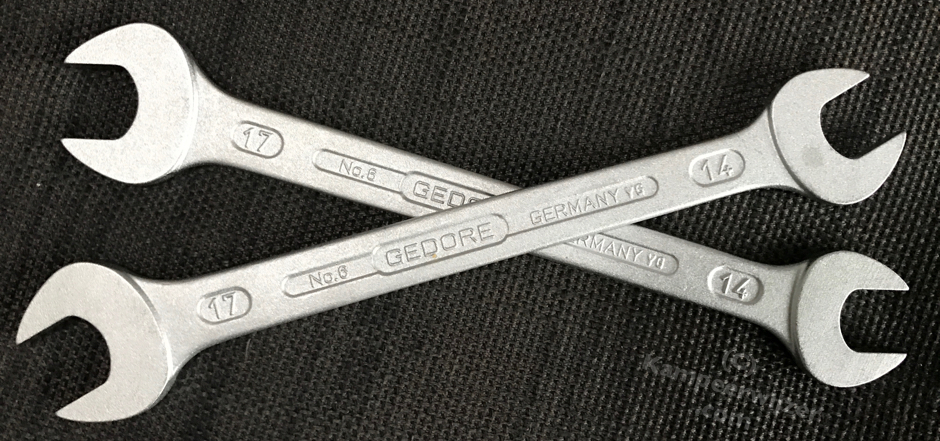 Tijd dus om deze gereedschapskist voor de velomobiel aan een kritische inspectie te onderwerpen en precies af te stemmen op de trike. Alleen het hoognodige erin en al het andere eruit. Spaken voor een 26″ wiel? Niet nodig. In het achterwiel zit de Go SwissDrive motor gespaakt met dezelfde spaaklengte als de 20″ voorwielen. Rolletje ductape? We wikkelen een stuk tape om de fietspomp en het rolletje kan uit de gereedschapstas. Bestaat de ultieme multitool waar alleen dát in zit wat je nodig hebt? (Ja, die hebben we gevonden, hij vervangt bandenlichters, inbussleutels en torx/kruiskop schroevendraaiers – zie verderop). Hoe vaak wil je je ketting oliën? Dat doen we wel vlak voor de vakantie, hoeft er geen flesje mee. In plaats van diverse steeksleutels nemen we een 6″ verstelbare moersleutel mee. Hoewel we een steeksleutel 14/17 hadden gevonden, bijzonder handig voor de Scorpion FS trike. De 17 is nodig voor het achterwiel als je de achterband wil verwisselen (helaas geen eenzijdig opgehangen achterwiel zoals in een Quest) en 14 voor de zijspiegels vastzetten.