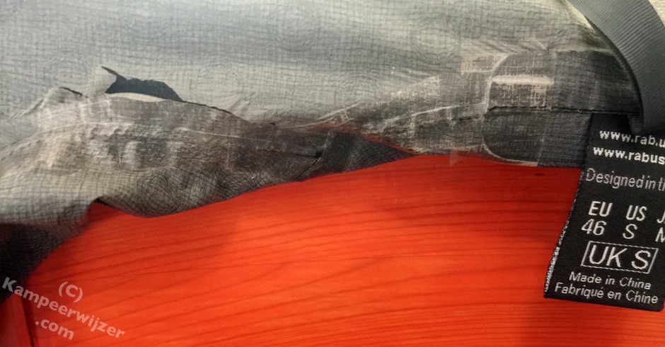 Na nog een zinloze wasbeurt met van dat spul waar je DWR-coating (Durable Water Repellent) van zou moeten herstellen (maar dat nooit doet – geef je geld niet uit aan Nikwax-producten) was het resultaat alleen maar troep. De jas gaf een soort rubber kruimels af maar zonder het gewenste resultaat – waterdruppels die weer mooi zou afparelen van de stof. Tijd dus voor vervanging van mijn geliefde Kinetic regenjasje van slechts 245 gram.