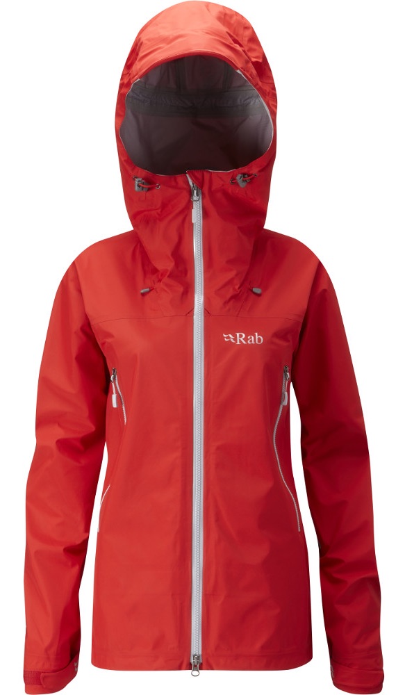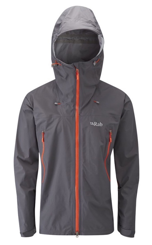 Ik wilde een opvallende kleur vanwege de zichtbaarheid, echter op het moment dat ik de jas wilde bestellen kon ik in Nederland alleen de kleur donkerblauw krijgen bij Kathmandu. Zodoende kwam ik terecht op de Britse webshop NeedleSports.com waar ik voor omgerekend 320 euro de nieuwe eigenaar werd van een exemplaar in een lichtrode kleur. De capuchon’s van Rab zitten altijd goed omdat ze voldoende verstelmogelijkheden hebben. Onder deze capuchon past eventueel ook een fietshelm. De maatvoering is bij Rab consequent: voor elk artikel heb ik altijd dezelfde maat nodig, of het nu broek of jas is. De steekzakken zitten op de juiste plek voor gebruik met een rugzak. Als de jas toch te warm wordt tussen de regenbuien door, kan je deze goed ventileren met ritsen die van je oksel tot halverwege je onderarm komen.