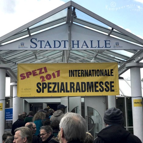 Op de SpezialRadMesse zie je vooral ligfietsen: veel trikes en velomobielen. De PodRide (niet te verwarren met de Podbike) die er nog in 2015 was, zagen we dit keer niet maar verder zagen we veel dezelfde dingen. Van de Nederlandse zaken waren Radical Design en Ventisit er. Volgens eigenaar Bart was het een gekkenhuis geweest (je zag ook echt iedereen op het beursterrein op een gegeven moment met een Ventisit onder de arm lopen). We zagen de gebroeders Vrielink van Flevobike met een Orca op de stand. Ymte en Frank bemanden de stand van Intercitybike. Dit was waarschijnlijk de allerkleinste stand op de beurs maar ook zij hadden niets te klagen over aanloop en de vierwielige DF was continu onderweg met proefrijders. Velomobiel.nl stond weer op dezelfde plek op het buitenterrein. Een stand in het midden met twee ‘ingangen’, waardoor je er tijdens het rondje twee keer langs komt. Een rode QuattroVelo en een blauwe Quest kwamen op het parkoers continu langsrijden met daarin geïnteresseerden. We zagen Monique op de grote stand van Nazca staan, druk in gesprek. We kwamen op de beurs ook diverse bekenden tegen, zoals Dieter en Hannah van het Oldenburger Liegeradtreffen.