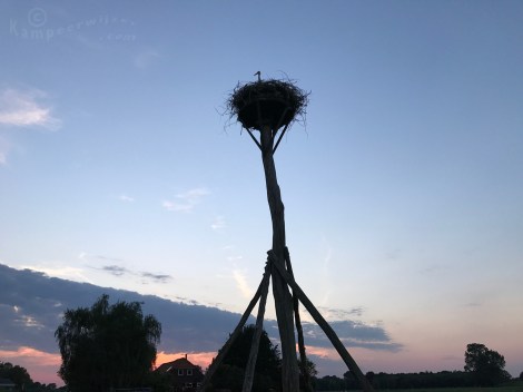We zetten ons tentje weer op tussen de caravans met voortenten. Helaas stonden hier geparkeerde auto’s op het veld, daardoor lijkt het alsof je kampeert op een parkeerterrein. We fietsen 1,2 kilometer naar de supermarkt in Denekamp. Behalve bananen en krentenbollen voor de terugweg waren er ook koude Grolsch-biertjes te koop. Met een boekje in de schaduw van een boom was het zo goed uit te houden. Het gevriesdroogde avondeten bereidden we ondertussen op onze spiritusbrander.