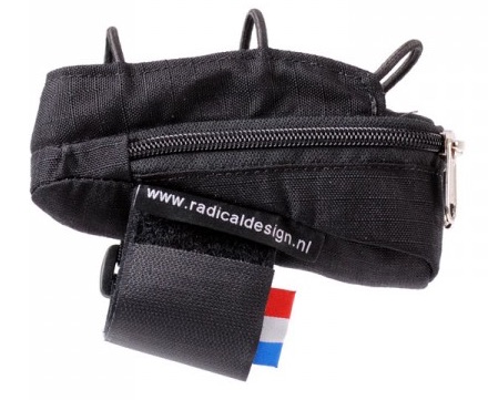 In het tasje zelf kan je bijvoorbeeld een paar reservebatterijen en je sleutels kwijt maar geen telefoon (tenzij je nog een Nokia 3310 of iets soortgelijks hebt). Wel moet je er rekening mee houden dat het tasje van Cordura gemaakt is en daardoor niet waterdicht is, net als de banaantassen van hetzelfde merk. Ik heb het tasje opgevuld met een rubberen wigvormige deurstop. Die geeft het tasje de juiste vorm en het kan tegen water.