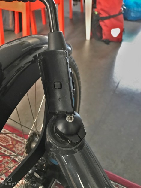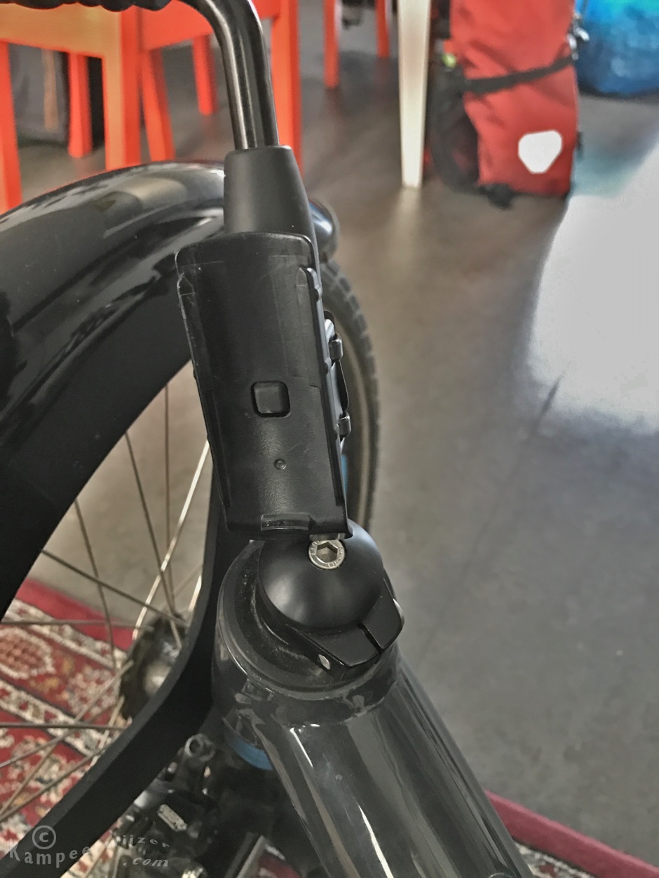 De GPS heeft een hele reis afgelegd op onze trikes, op zoek naar de ideale positie. Uiteindelijk hebben we die gevonden, zij het dat Dave een andere plek heeft gevonden die hij ideaal vindt dan ik.