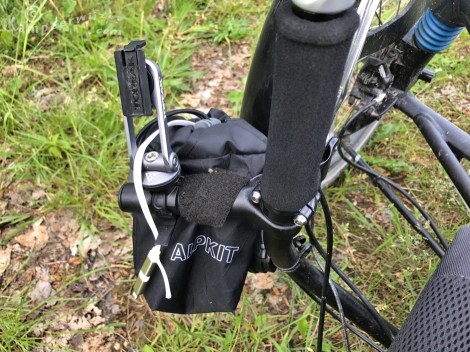 Als de GPS in het tasje zit, zijn de knoppen aan de zijkant van het apparaat wat moeilijker bereikbaar maar die heb je onderweg toch niet vaak nodig bij een eTrex. Een eTrex 30(x) of de Touch 35 passen erin maar we hebben maar twee van de drie elastiekjes nodig. De band waarmee je het tasje vastzet op de buis is stroef van binnen waardoor het tasje goed rechtop blijft staan.