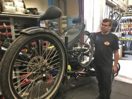 elan-hans Gepubliceerd 12/06/2017 at 940 × 705 in Op pad voor 3000- kilometerbeurt ← Vorige Volgende → Hans van Elan kijkt een van de trikes na