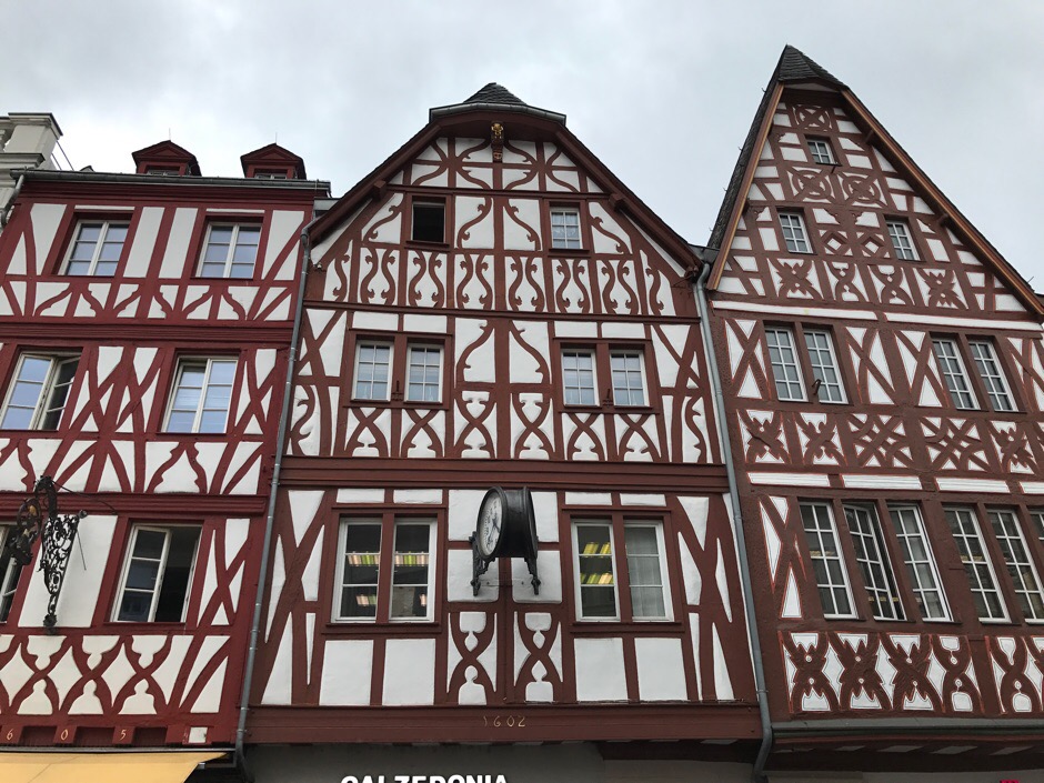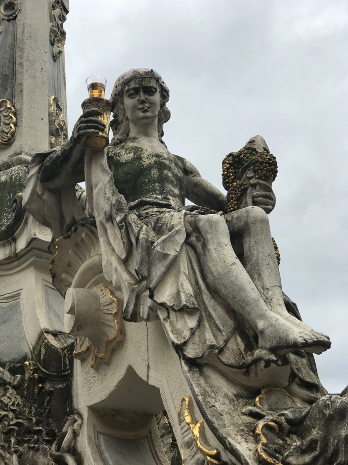Hotel Romerbrücke heeft een garage voor de fietsen, een drooghok voor de tent en het lekkerste dessert dat we ooit hebben gegeten: kaneelpruimen met vanilleijs en slagroom. Bij Bett+Bike hotels kan je een lunchpakket bestellen, wat ons wel handig leek. Op zondag kan er veel gesloten zijn in Duitsland. Trier, samen met Worms de oudste stad van Duitsland, is een beetje zoals ik me Wenen voorstel: veel protserige fontijnen en rococo/barok beelden en gevels. Verder is het net de Kalverstraat met overal winkelformules, behalve de drogisterijen: die zijn zo groot als een supermarkt. Hoeveel onzinnige zooi kan je denken nodig te hebben? Ik zag een man met een halve winkelwagen vol drogisterijartikelen.