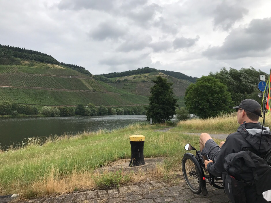 Het water van de Moezel (Mosel in Duits) is vrij helder. Het pad loopt vaak door een soort parkachtige omgeving. Redelijk veel andere fietsers, die veel langzamer en vaak veel slechter fietsen. Toch maken ze net zoveel kilometers als ons: wij maken kennelijk veel biobreaks.