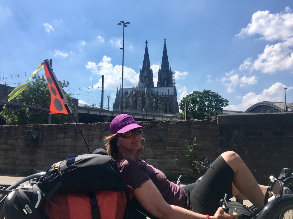 Het is veel drukker langs de Rijn, onder andere met hele groepen die fietsen. Veel irritaties en bijna-ongelukken gehad, deels door de gebrekkige infrastructuur voor fietsers. Het lijkt wel alsof de voetganger en auto er eerst waren en dat de fietser er later tussen gefrommeld moest worden. Rond Keulen lijken ze naar Nederland gekeken te hebben: woonerven, rood-witte wegaanwijzers voor fietsers en opstelvakken voor fietsers bij stoplichten (die automobilisten vervolgens niet snappen).