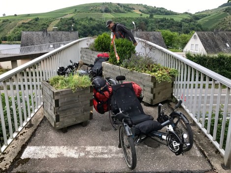 Bedankt voor de aanvulling. Ik schreef “net na Andernach”, voor mijn gevoel waren we nog niet zo’n eind onderweg. De Eurovelo 15-route loopt over dat bruggetje, er is voor fietsers geen alternatief of het moet de rijbaan zijn.