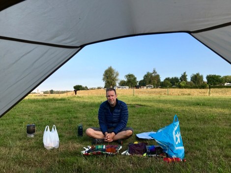 Om zes uur opstaan heeft als voordeel dat het nog lekker koel is. De receptie is pas om 8.00 uur open om de borg terug te krijgen van de sleutel van het acculaadstation en het tentnummer. Dus we zetten eerst lekker koffie op onze Vargo Woodstove. We halen daarna onze accu’s op, handelen de administratie af en zijn om half 9 op pad. Het is dan nog lekker rustig op de weg, weinig andere fietsers.