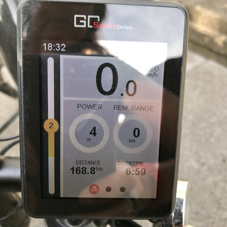 In totaal doen we tien uur over de 168,8 kilometer naar huis. De computer van de fiets geeft aan dat we op één minuut na zeven uur hebben gefietst. De eerste honderd kilometer heb ik op stand 1 gefietst, totdat de eerste accu leeg was. Daarna heb ik in stand 2 gefietst, waar ik normaal in fiets (er zijn vijf plus-standen). Ook deze accu gaat op nul één straat verwijderd van ons huis. Ik heb geen last van mijn voet gekregen.