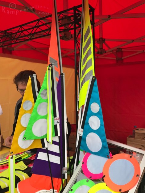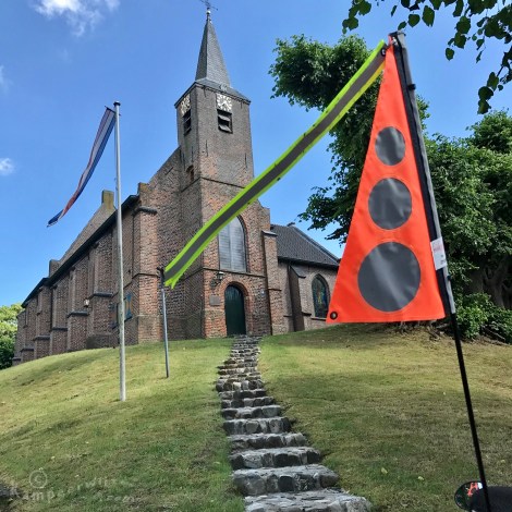 Soms is de vlag van de fiets omdat we zijn vergeten ‘m erop terug te zetten, bijvoorbeeld als de trike opgevouwen is geweest. Dan merken we beiden heel snel in het verkeer dat de vlag ontbreekt. Tóch gezien worden in een situatie waarin je dat niet verwacht, maak je dan niet mee.