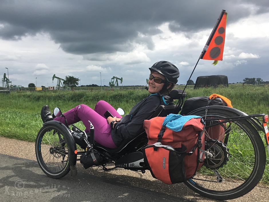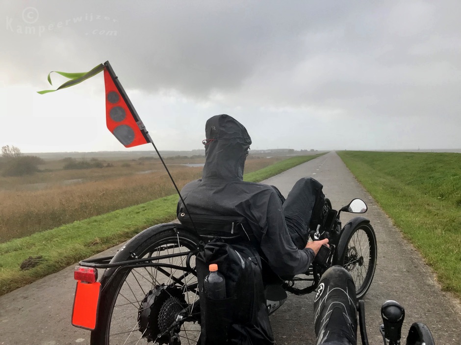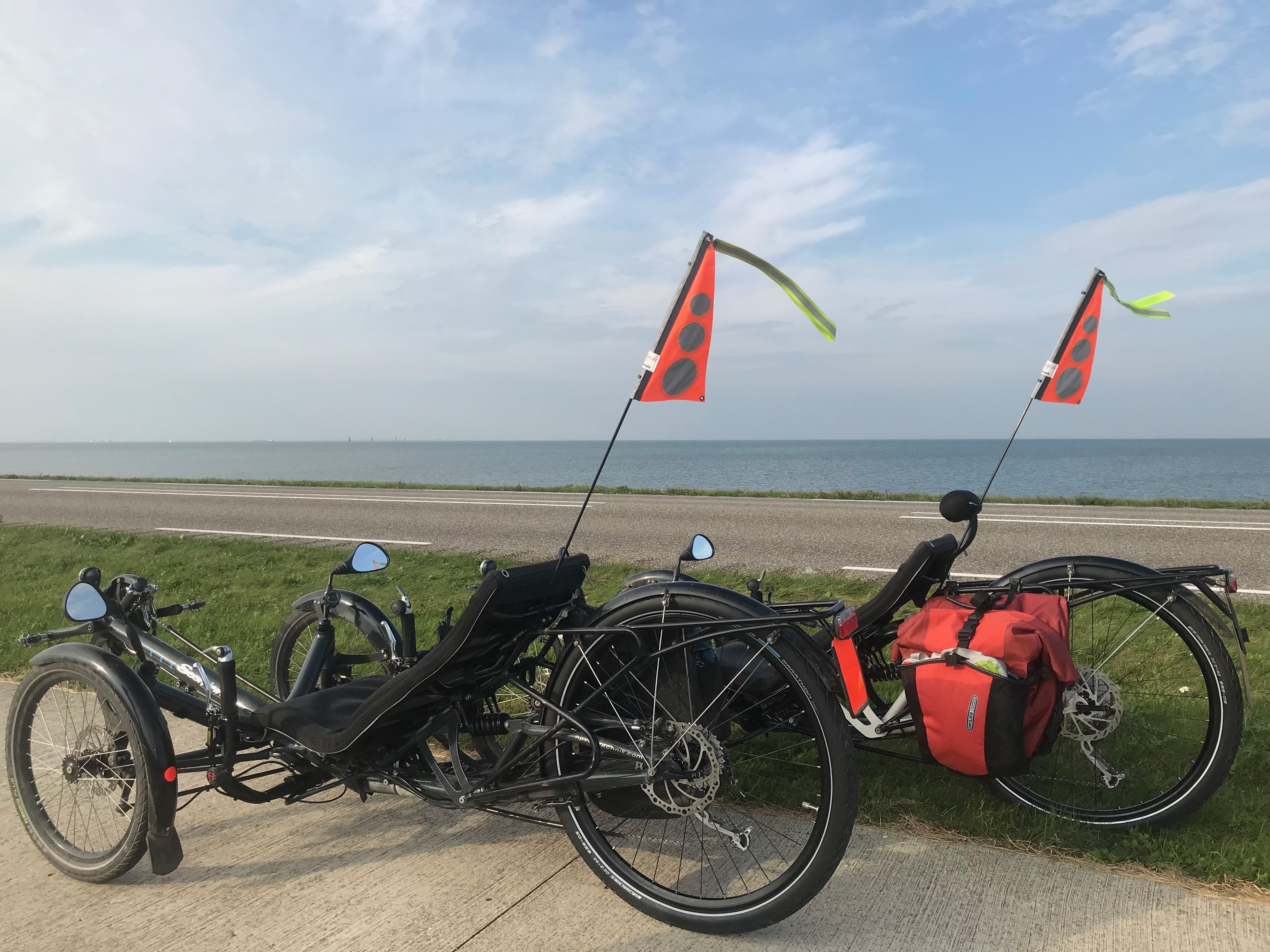 Puur om van het gezeur “er moet een vlaggetje op” af te zijn, kochten we vorig jaar ieder een vlaggetje voor op de fiets. Sindsdien hebben we beiden het idee dat we toch vaker opgemerkt worden, ondanks wat er aan verhalen rondgaat binnen de ligfietsvereniging.