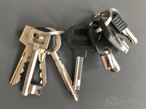 In de KeySmart passen alleen sleutels van een cilinderslot. Je krijgt er een ringetje bij waarmee je de ruimte compenseert bij een oneven aantal sleutels. Dit ringetje kan je eventueel vervangen voor een los te verkrijgen flessenopener. Aan het ringetje kan je bijvoorbeeld de afstandsbediening van de centrale vergrendeling van een auto vastmaken. Helaas passen de sleutels van mijn fiets niet in een KeySmart, dat zijn van die dikke ronde. Ook autosleutels, sleutels van binnendeuren en sleutels van pensloten gaan niet passen.