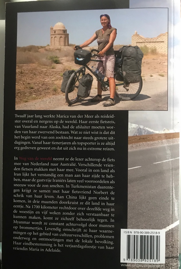 In haar boek Weg Van De Wereld verhaalt Marica van der Meer over haar fietsreis naar Australië. Ze fietst de hele afstand van Workum naar Adelaide, behalve als ze over water moet, want over water kan je niet fietsen.