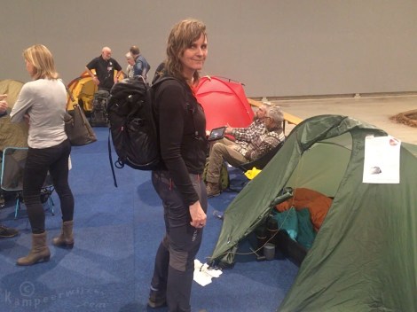 We hadden vorig jaar gehoord dat de lezing van de Rugzaklopers over ultralight kamperen erg leuk was, dus zorgden we ervoor dat we het dit jaar niet zouden missen. Marianne van de Rugzaklopers liet haar vaak zelfgemaakte spullen zoals een rugzak en slaapzak door de zaal gaan. Voor de rest was het meeste theorie van deze presentatie over ultralight backpacking bekend omdat de door haar genoemde boeken hier thuis ook in de kast staan. Elke ultralight kampeerder met een paraplu, daarvan weet ik meteen dat ze Ray Jardine hebben gelezen. Haar paraplu was wel een bijzonder licht exemplaar. Ze noemde een aantal interessante bronnen en zaken zoals het videokanaal Outdoors Station, de app OS Locate en carbon felt voor gebruik in spiritusbranders. Ze gebruikt broodclipjes als wasknijper. Haar titanium windscherm komt van AliExpress. Verder bleek ze een fanatieke outdoor kok, met het zelf drogen en vacuüm verpakken van voedsel. Wie daar meer over wil weten kan terecht op BackpackingChef.com.