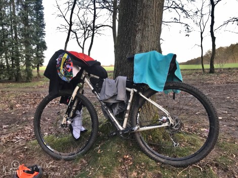 Wat ik leuk vond om te zien is dat zo’n nieuwe(re) ontwikkeling als bikepacking weer een hele nieuwe impuls geeft binnen zo’n vereniging. Ik had het idee dat de groep kampeerders ongeveer 50/50 uiteen viel in offroaders en de traditionele fietsreizigers. Dus stond ik klaar voor de tocht tussen mannen die hun lycrabroekjes hadden verwisseld voor een stoere korte broek (daar kan je je versleten zeembroekje verder onder afdragen) en mountainbikes. Op het kampeerterrein was het verschil ook te zien: sommigen arriveerden met een hele tassenset aan voor- en achterwiel waar dan complete tunneltenten, Trangia keukens en stoeltjes uitkwamen en anderen hadden bikepacking-tassen en lichtgewicht kampeerspul bij zich.