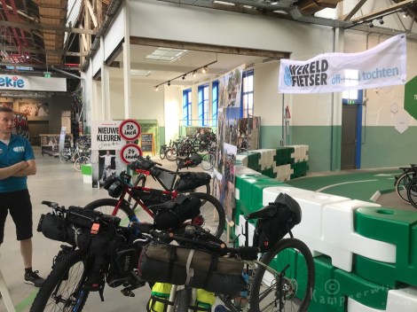 Toen ik later de online gezette foto’s van het wereldfietsbeurs(kampeerweekend) zag van een Wereldfietser-forumlid, bleek dat ik een aantal stands helemaal niet gezien heb, zoals de beursstand van de Europafietsers en van de Wereldfietser zelf. Goed om te weten als de beurs volgende keer hier weer gehouden wordt: de Wereldfietsbeurs zit verweven door de permanente tentoonstelling van testcentrum De Fietser, waarschijnlijk door de hele zaal. In totaal waren er negentien stands.