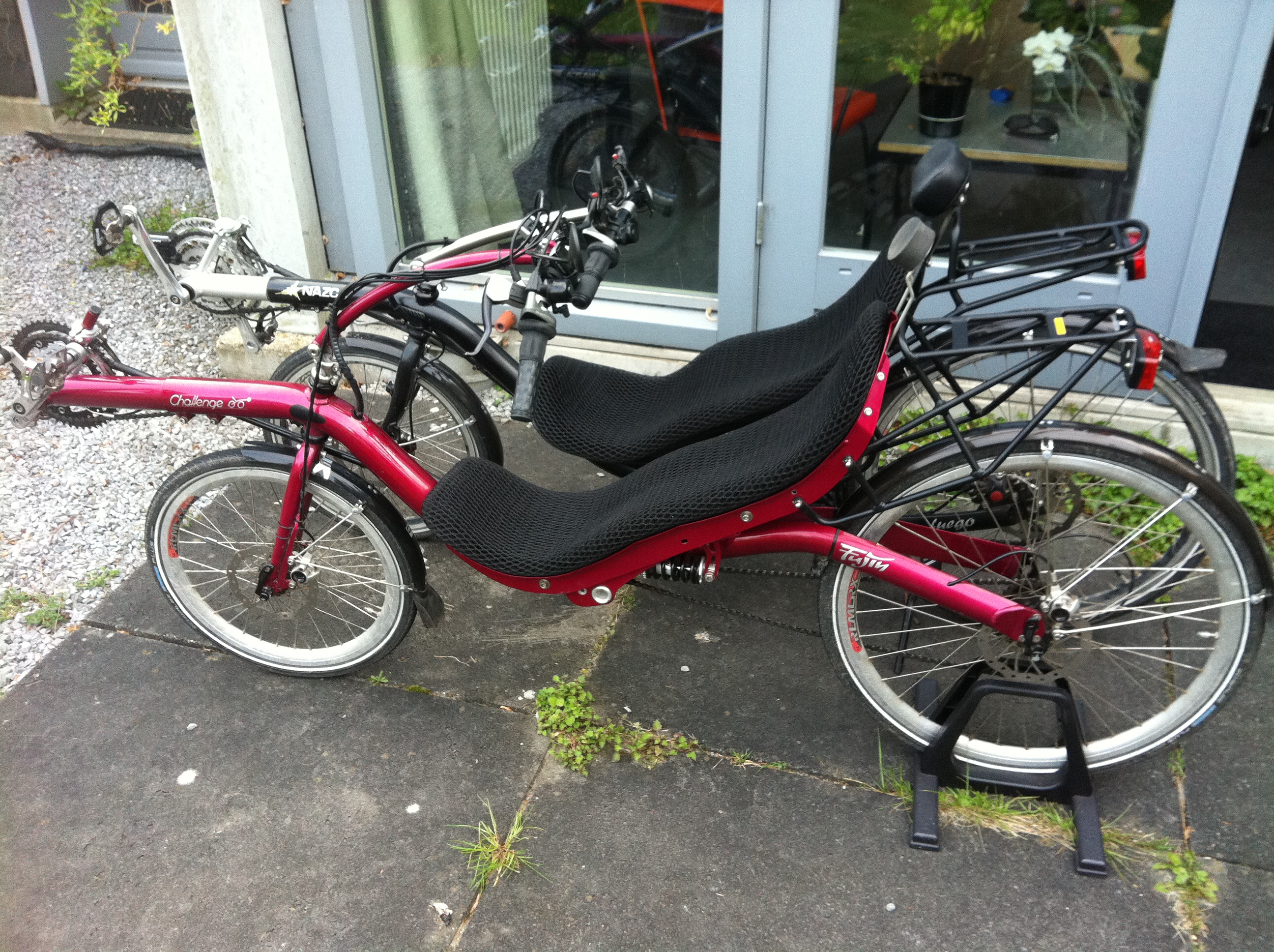 Zadelpijn was nooit een reden voor mij om te gaan ligfietsen. Op mijn oude Gazelle met drie versnellingen fietste ik elke week 150 kilometer op en neer naar school, maakte ik lange fietstochten en toen ik 16 was ging ik samen met een vriendin voor het eerst met die fiets op fietsvakantie naar Terschelling. Nooit een centje pijn, totdat ik deze heuse vakantiefiets kocht. Wederom een Gazelle met voor- en achterderailleur, alles Shimano XT tot en met de naven en cranks. Door het voorover leunen op het stuur liep ik neurologische schade op aan mijn linkerhand. Dit was de aanleiding (en een onverbiddelijke neuroloog) om te gaan ligfietsen.