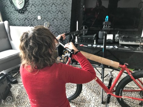 • Van de Gazelle Kathmandu werden de pedalen, zadel, Santos Alleshouder en de Jones Loop H-bar afgehaald en overgezet op de Sonder Frontier. Daarvoor moesten de ESI Extra Chunky XL handvatten er eerst af en nieuwe erop gezet worden wat een #%$@&*-werkje is (nee water helpt echt niet, alleen perslucht).