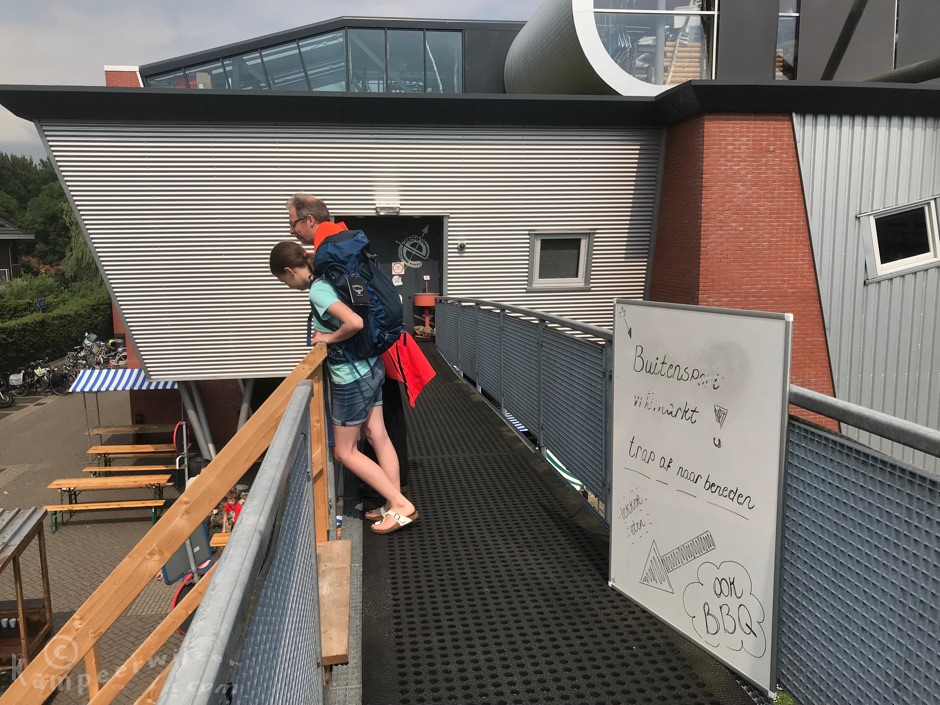 Bij het aankomen liepen we inderdaad rechtdoor naar binnen. De extra houten trap merkten we pas op omdat we na het doen van de aankopen bewust even langs de markt ( en BBQ…) liepen. Konden we hem in ieder geval op de terugweg gebruiken ;)